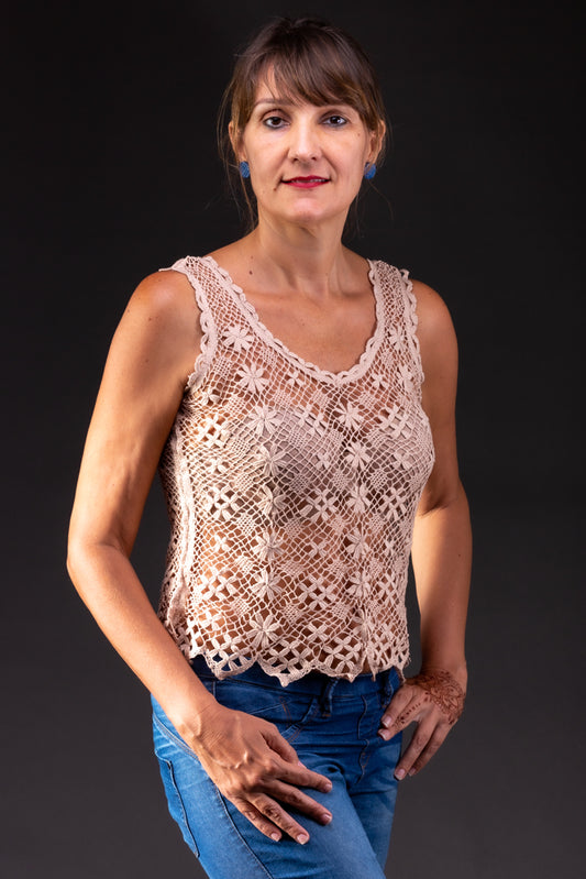 Amarelo, regata de Renda de Bilros Feito à Mão