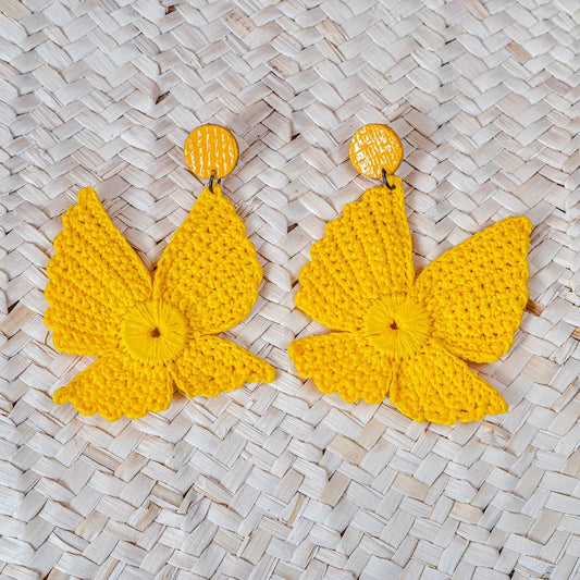 Void, brincos de bananeira e cobre com banho em ouro rosa - joias sustentaveis