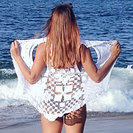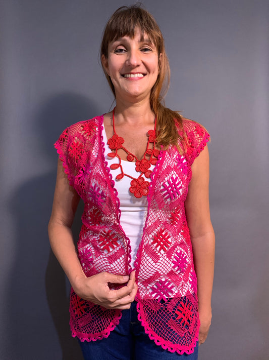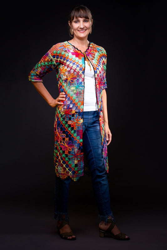 Secreto, sobretudo de Bordado Filet feito à Mão