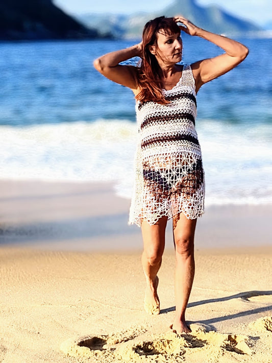 Flamingo, Vestido de Bordado Filet feito à Mão