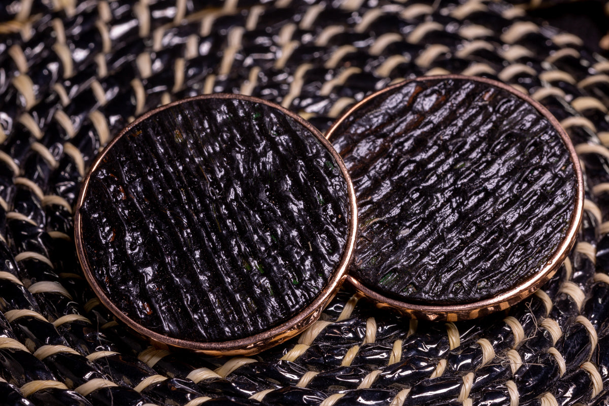 Black Bubbles, banana earrings, silver and rose gold - Sustainable jewelry