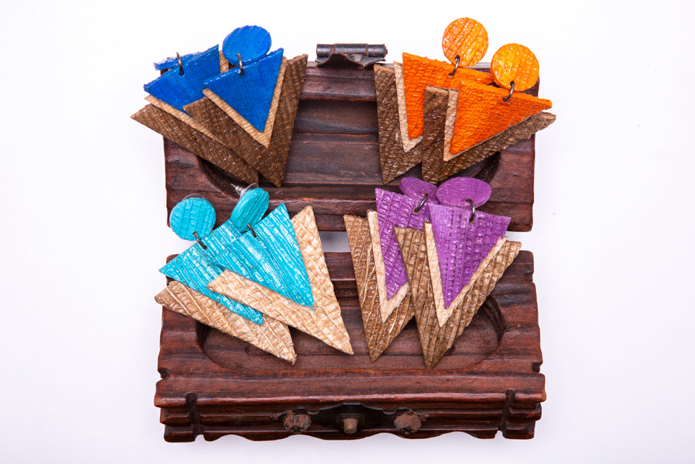 Triangle, sustainable banana tree earrings