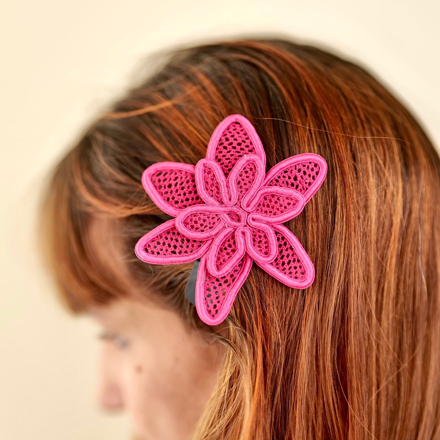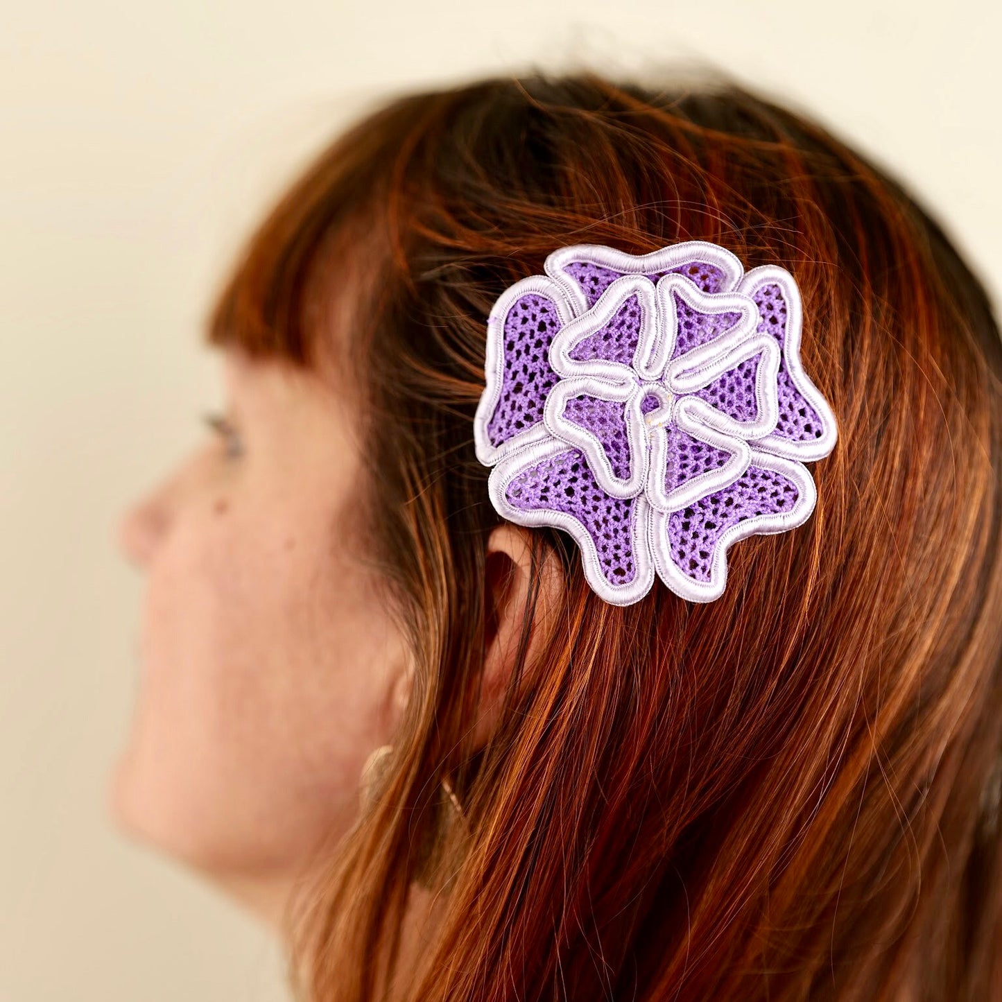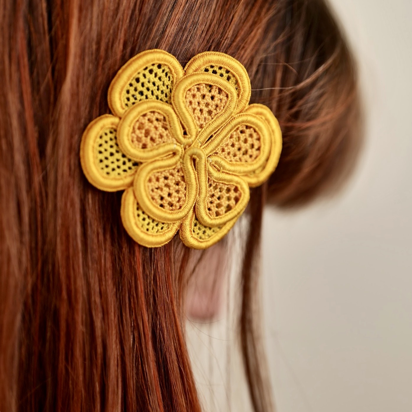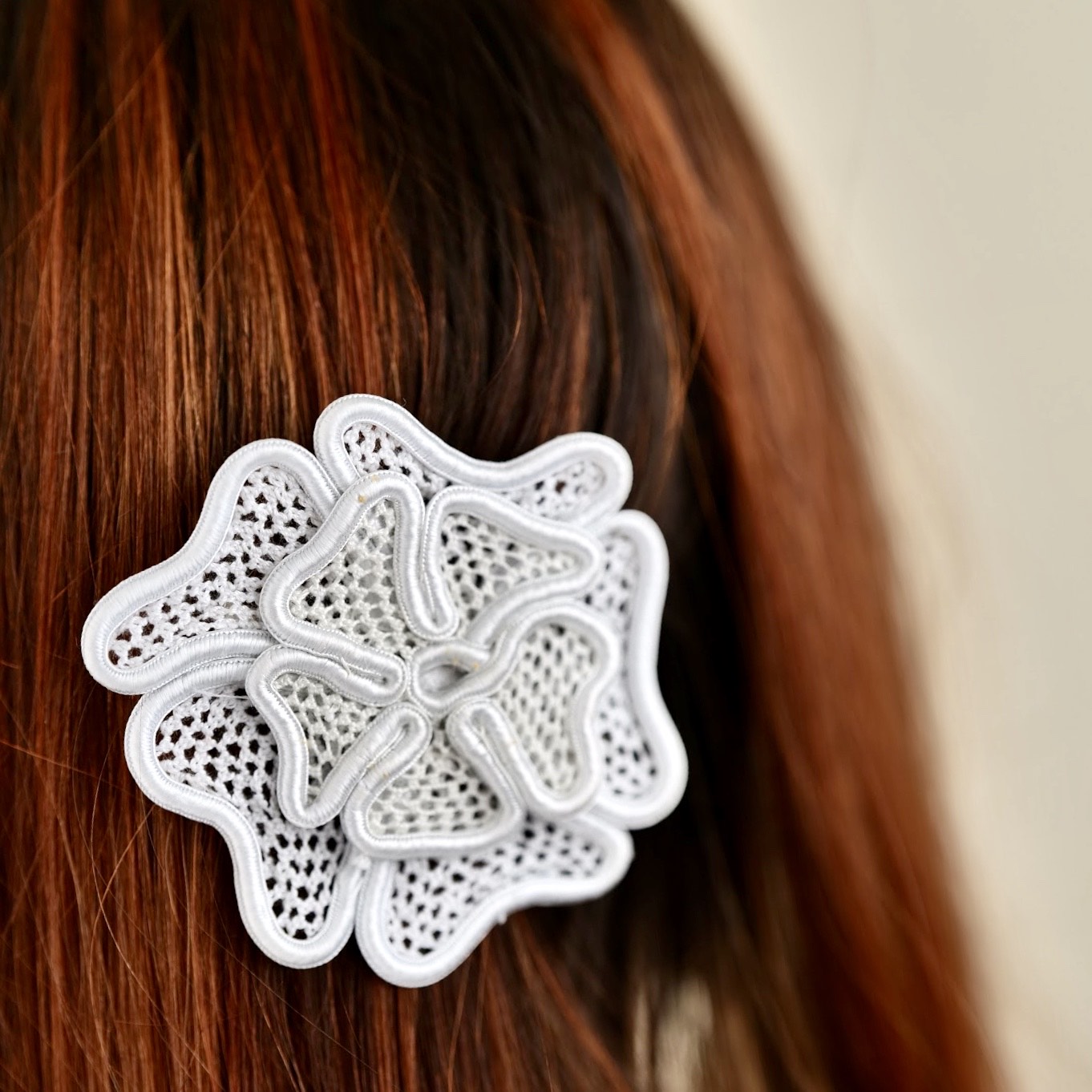 Discover the delicacy and sophistication of our handcrafted Irish lace barrette. Created using traditional techniques, each piece is a true work of textile art, combining vintage charm with a timeless, signature design.