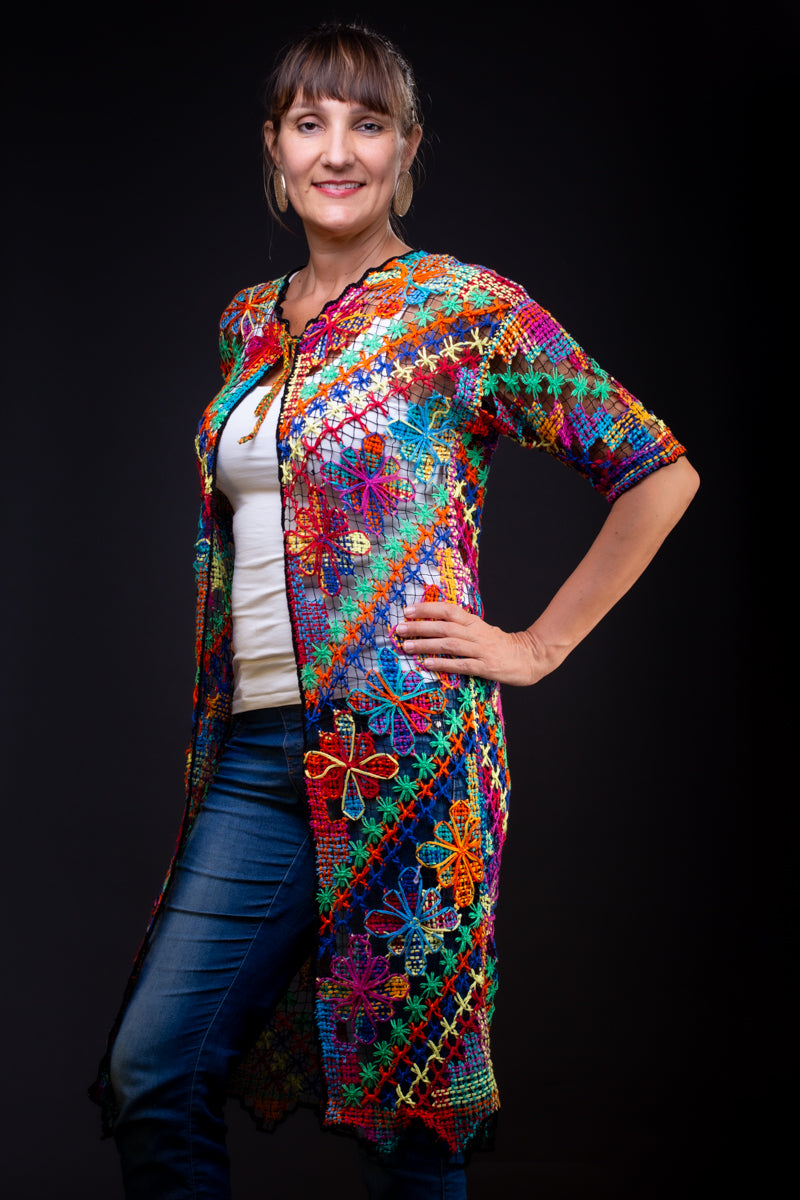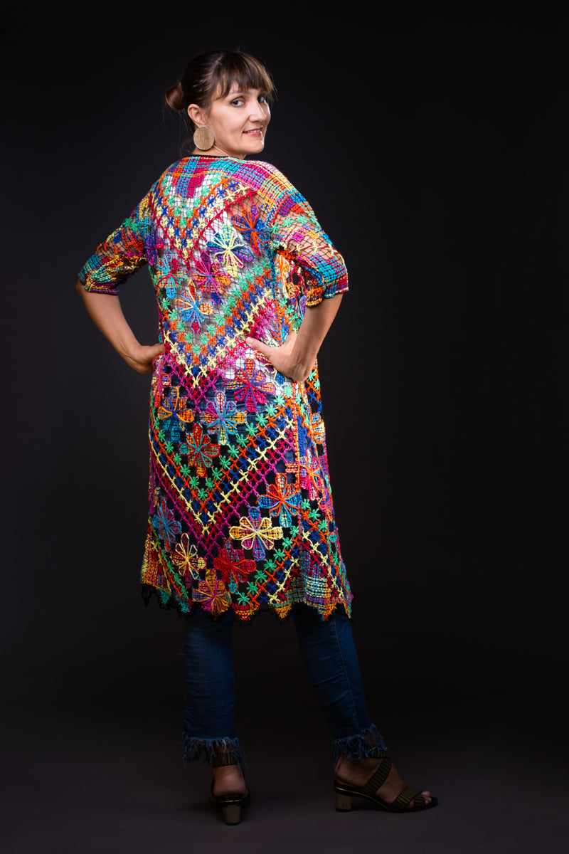 Made with traditional filet embroidery techniques and high-quality materials, this handcrafted overcoat combines sustainability, conscious fashion and classic beauty. Lightweight, comfortable and made with attention to every detail, it is the ideal piece to enhance your style with authenticity and refinement.