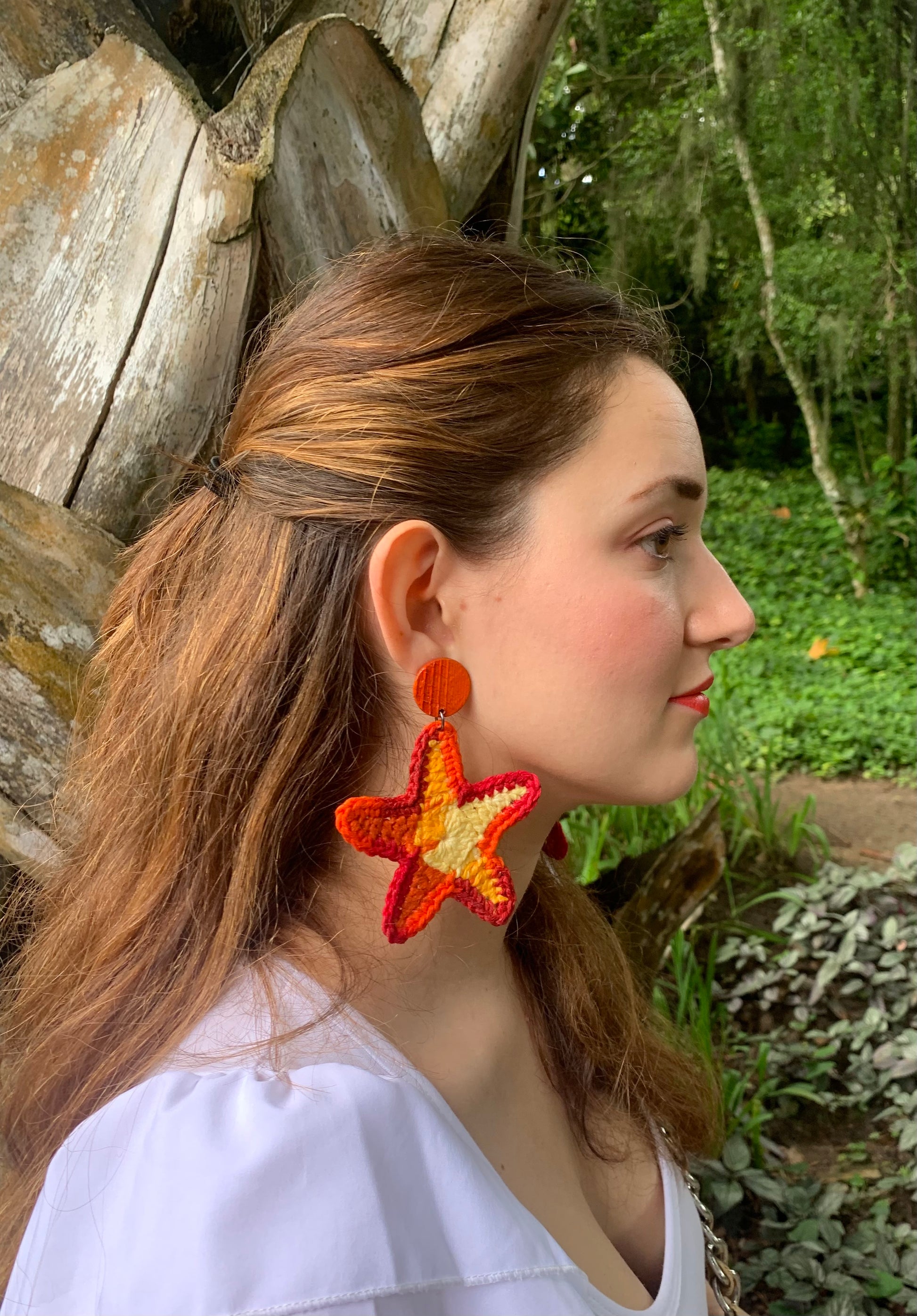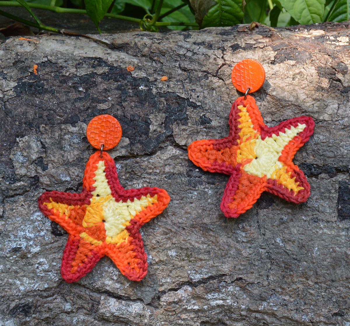 Star, sustainable banana tree and crochet earrings