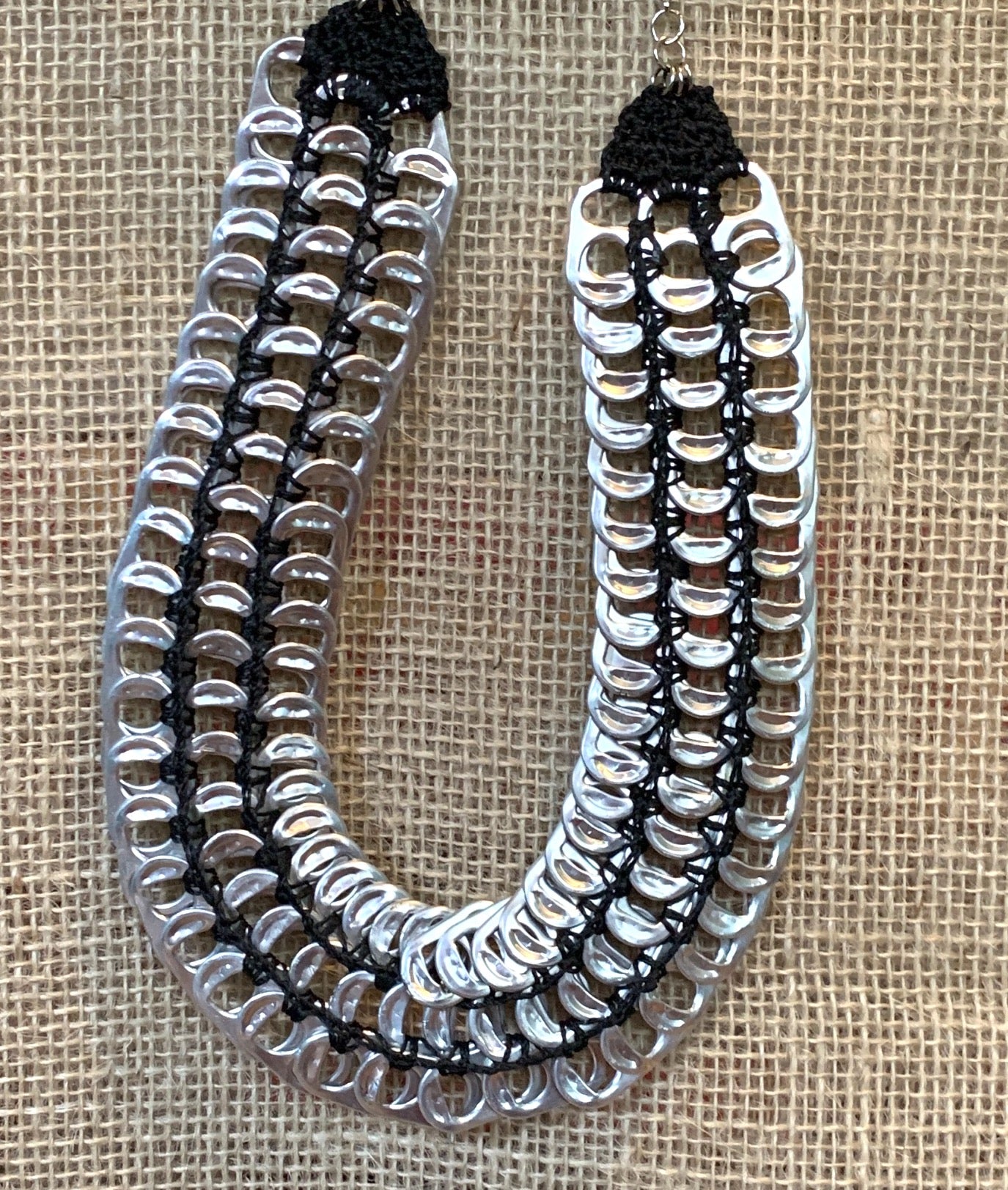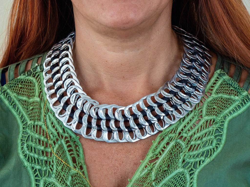 Explore the charm of sustainability with our necklace made from recycled tin cans. Each piece is carefully handcrafted, transforming waste into elegant accessories that combine creativity and environmental responsibility. Made from recycled materials, these accessories are the perfect choice for those who value conscious fashion, unique design and sustainable style.