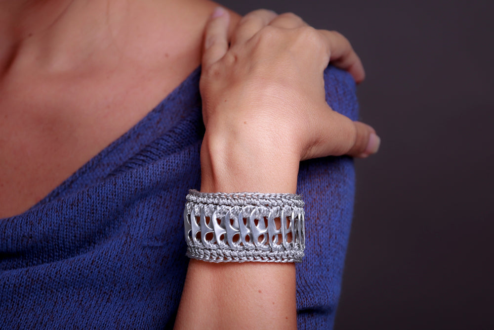 Explore o charme da sustentabilidade com nossa pulseira feita a partir de lata reciclada. Cada peça é cuidadosamente artesanal, transformando resíduos em elegantes acessórios que unem criatividade e responsabilidade ambiental. Produzida com materiais reciclados, esse acessório é a escolha perfeita para quem valoriza moda consciente, design exclusivo e estilo sustentável.