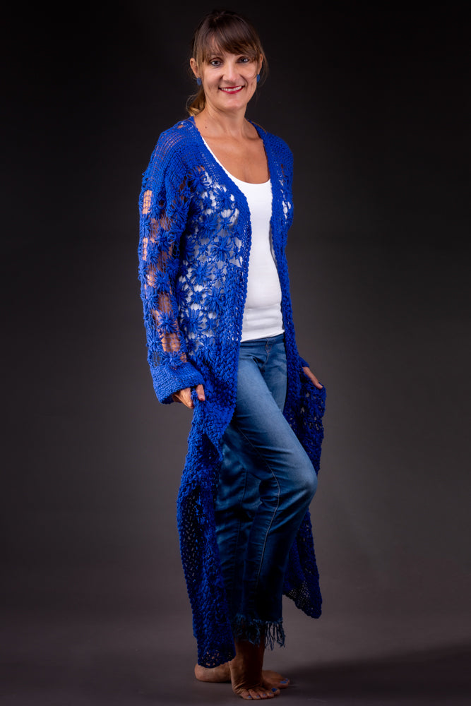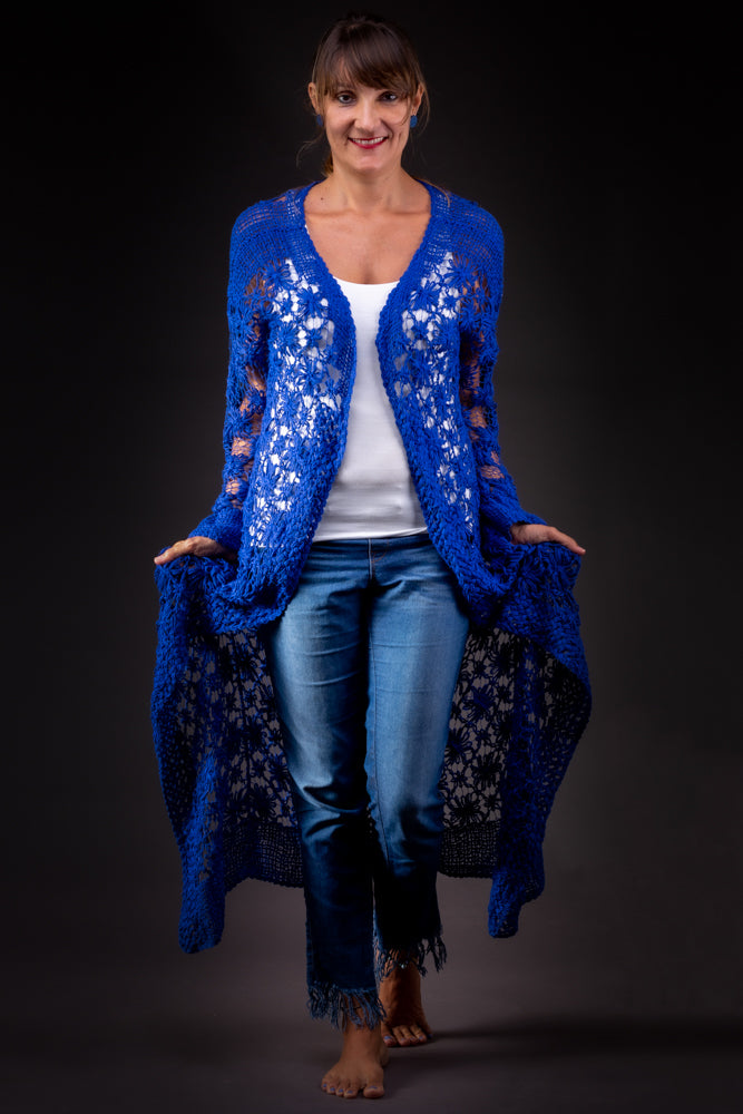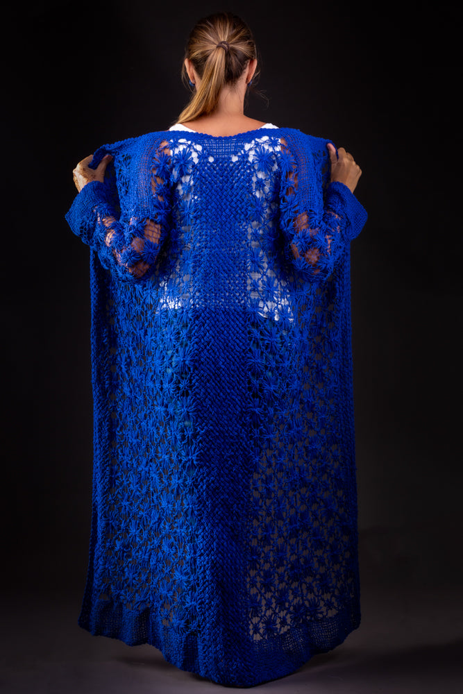 Produzido com técnicas tradicionais de bordado filet e materiais de alta qualidade, este sobretudo artesanal une sustentabilidade, moda consciente e beleza clássica. Leve, confortável e feito com atenção a cada detalhe, é a peça ideal para valorizar seu estilo com autenticidade e requinte.