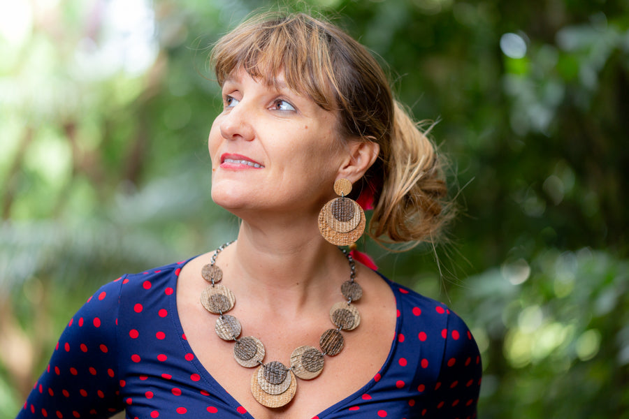 Encante-se com o charme rústico e moderno dos nossos colares feitos com fibra natural de bananeira, um acessório sustentável que combina design artesanal, leveza e propósito. Criado para quem busca um estilo autêntico e alinhado com a natureza.
