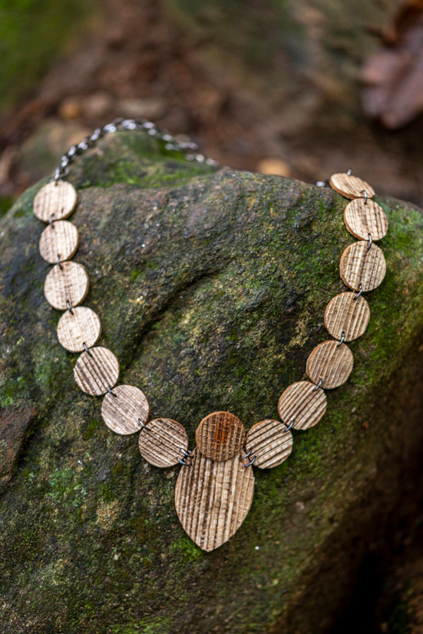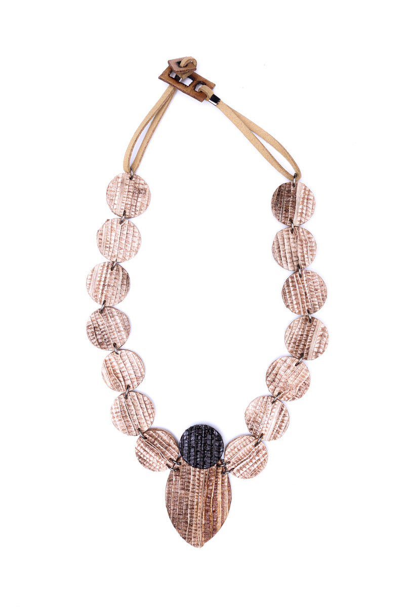 Encante-se com o charme rústico e moderno dos nossos colares feitos com fibra natural de bananeira, um acessório sustentável que combina design artesanal, leveza e propósito. Criado para quem busca um estilo autêntico e alinhado com a natureza.