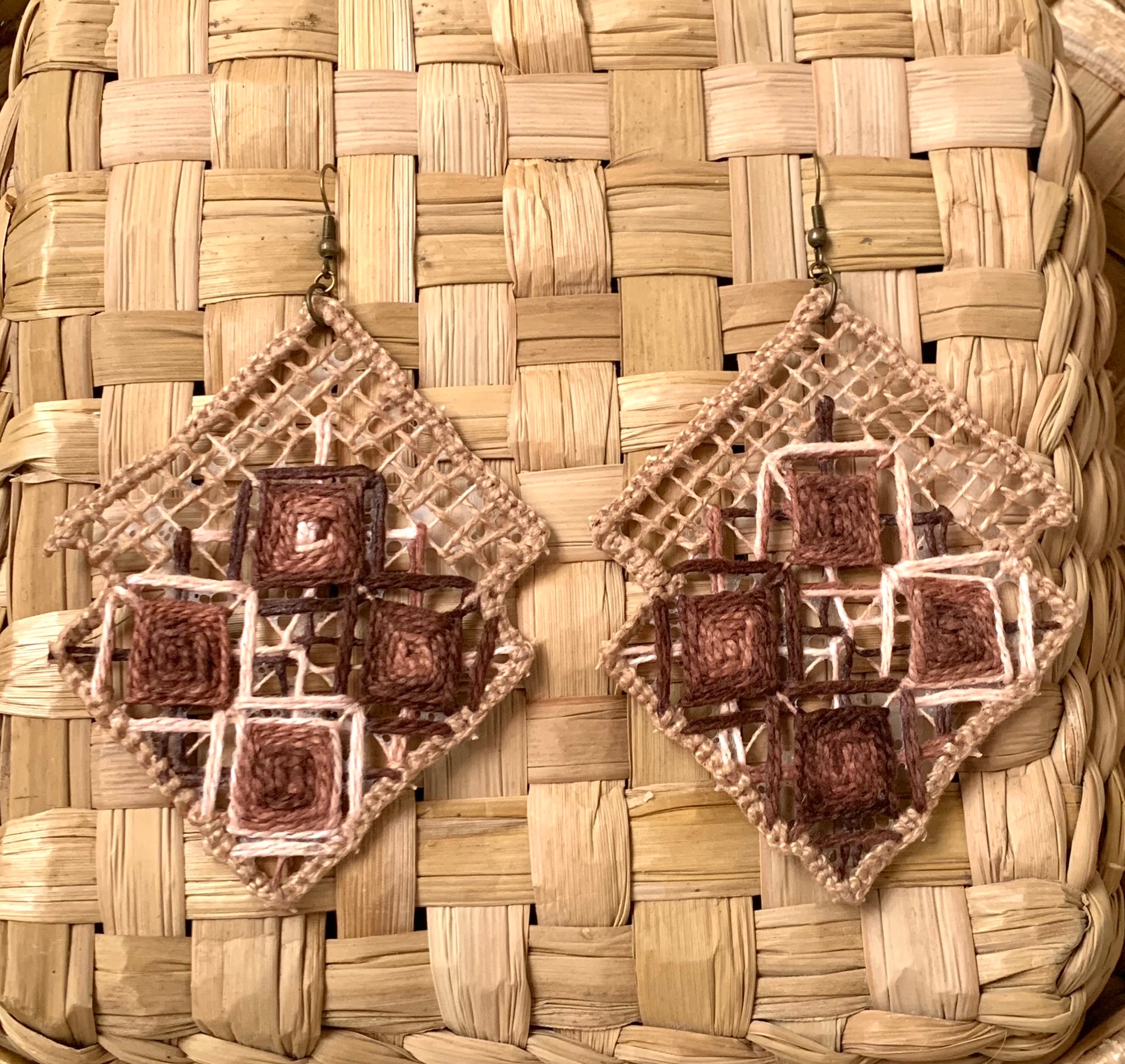 Encante-se com a delicadeza e elegância do nossos brincos de bordado filet. Produzidos totalmente à mão, este acessório romântico e clássico é ideal para quem valoriza moda artesanal, joias sustentáveis e estilo artesanal feminino.