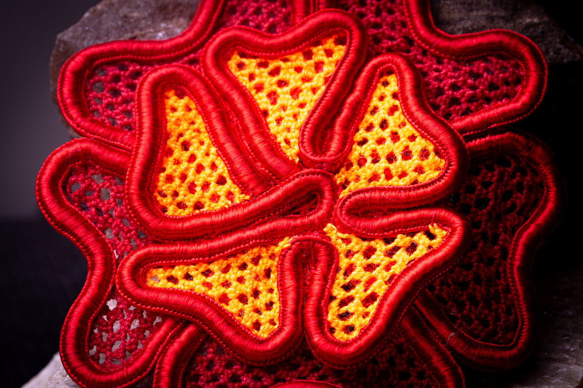 Produção artesanal: Feito com a técnica da renda irlandesa, ponto a ponto, com paciência e precisão.