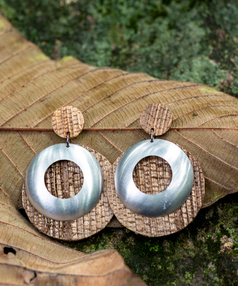 Explore o charme da sustentabilidade com nossos brincos feitos a partir de bananeira e lata reciclada. Cada peça é cuidadosamente artesanal, transformando fibras naturais e resíduos em elegantes acessórios que unem criatividade e responsabilidade ambiental. Produzidos com materiais reciclados, esses acessórios são a escolha perfeita para quem valoriza moda consciente, design exclusivo e estilo sustentável.